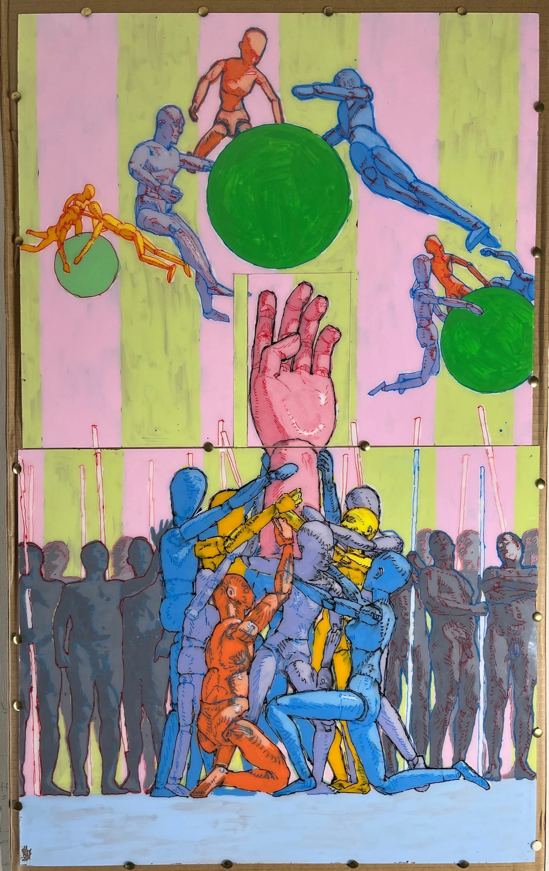 Oil, Paint Pen, Pastel and Acrylic on MDF