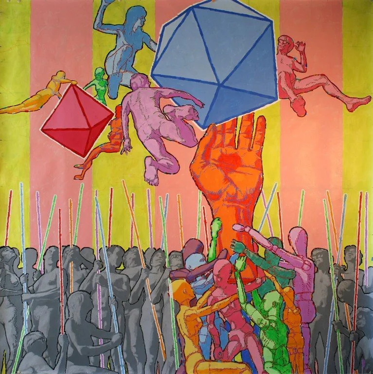 Lacquer on Polystyrene, Acrylic on Wood, Metal